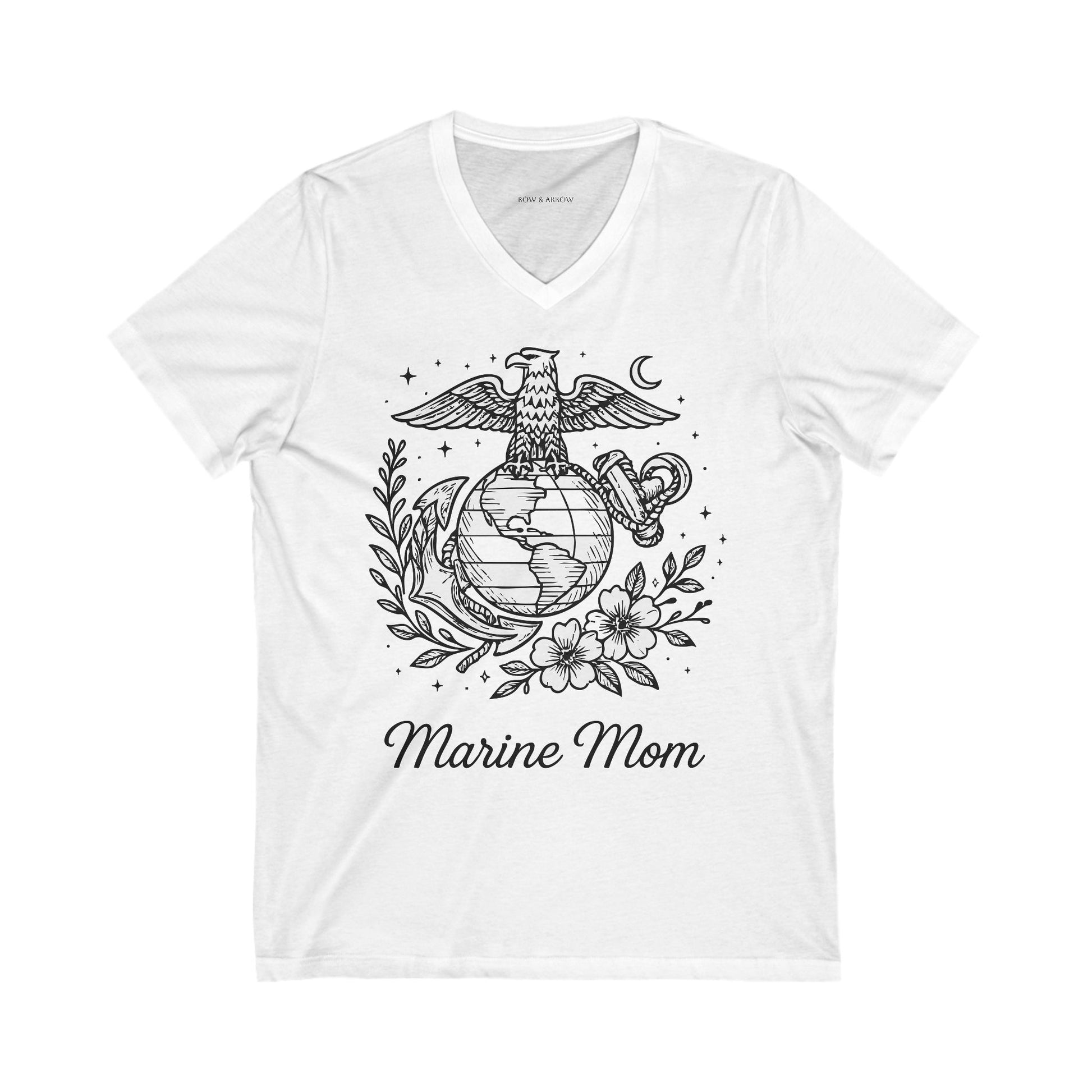 Marine Mom V-Neck Tee - Unisex Jersey Short Sleeve Shirt for Proud Mothers