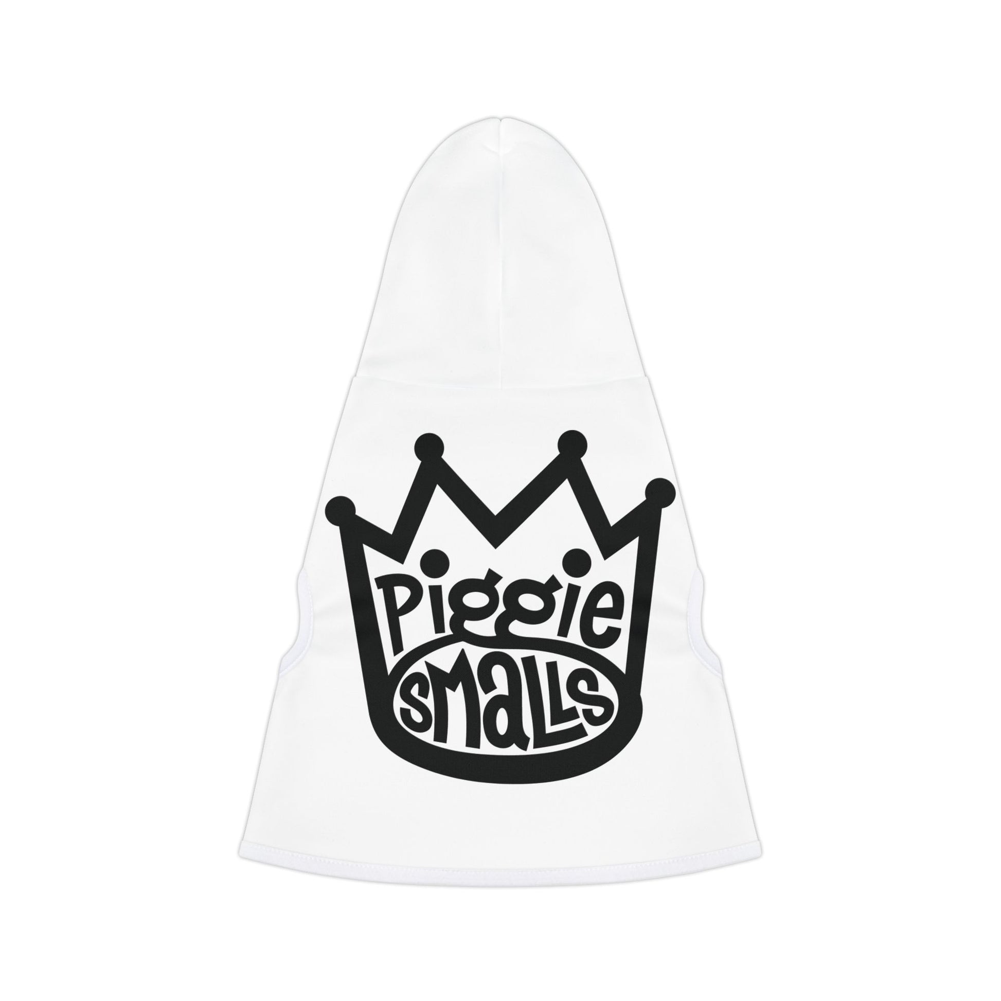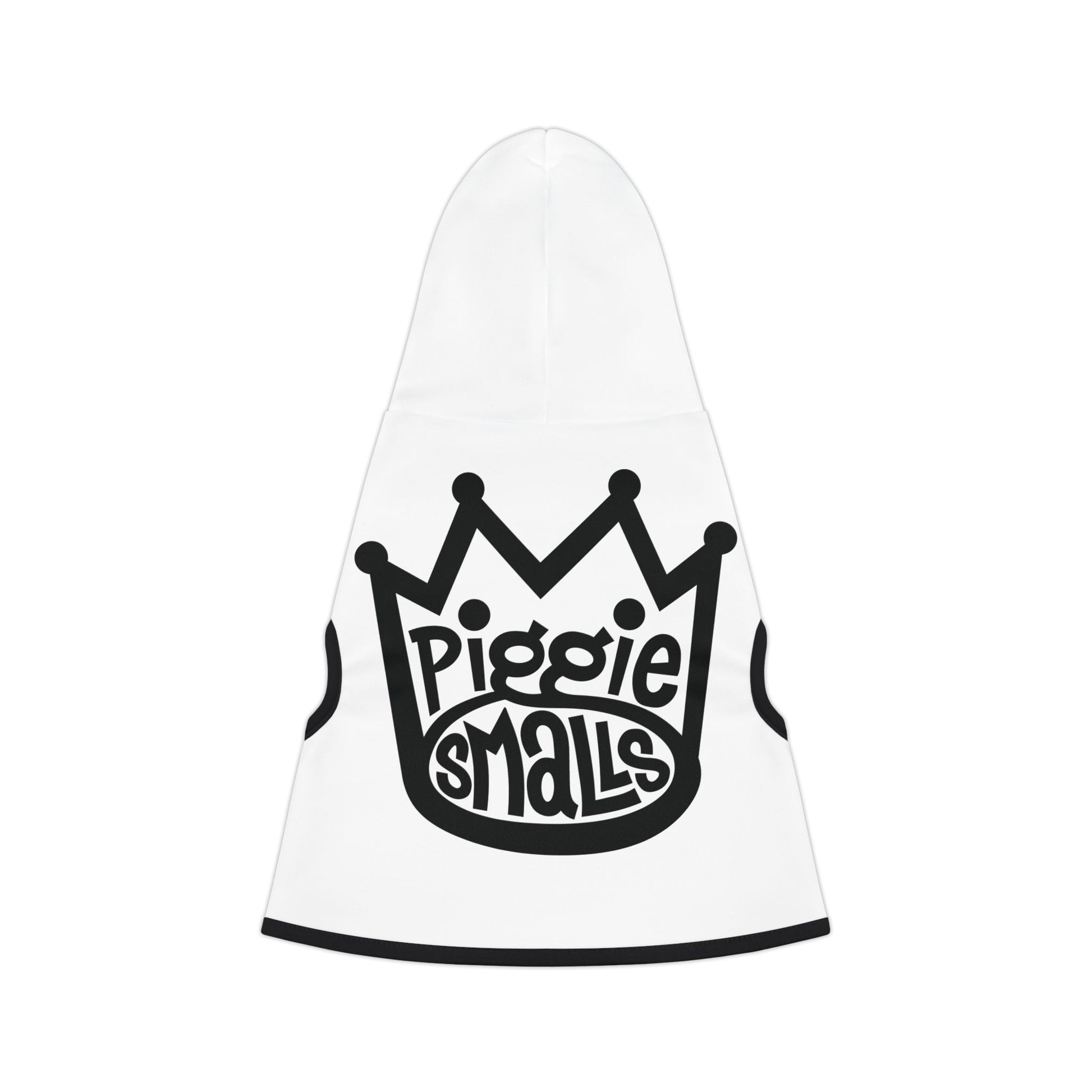 This hoodie features a bold black-and-white "Piggie Smalls" crown logo that’s as playful as it is iconic. It’s perfect for the dog with a little edge, a lot of charm, and a whole lot of love to give. Whether your dog’s a true hip-hop fan or just loves making a statement, this hoodie is the perfect fit for them.. With 5 sizes to choose from, this custom pet hoodie delivers a great fit and an adorable look. Choose between a black or white rib color for some extra style points and let your little pupper look adorable in all your pics.
